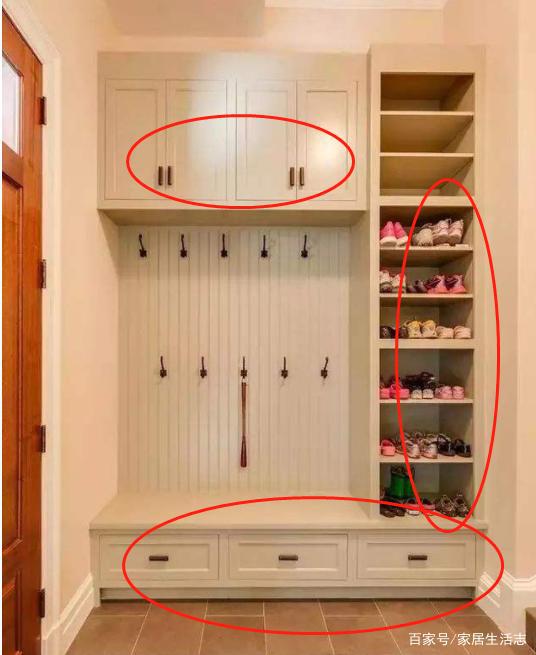 1、玄關(guān)的收納很重要,全家人的鞋子加在一起數(shù)量多,需要大的鞋柜才能裝得下,我們可以利用墻面空間全部打上柜子,這樣收納空間要比買的多,也更加實(shí)用。